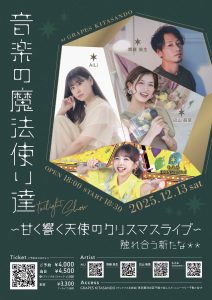 🎤12月13日(土)”音楽の魔法使い達”出演決定🎄!